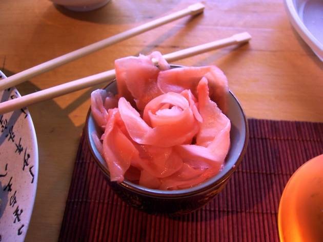 Затем приготовьте маринад, нагревая до растворения сахара четыре ложки сухого столового вина, желательно розового и столько же ложек сахара с двумя ложками водки. После растворения добавьте 200 мг рисового уксуса, закипятите. Залейте остывший имбирь и после остывания всей массы, поставьте, плотно закрыв крышкой, на три дня в холодильник.